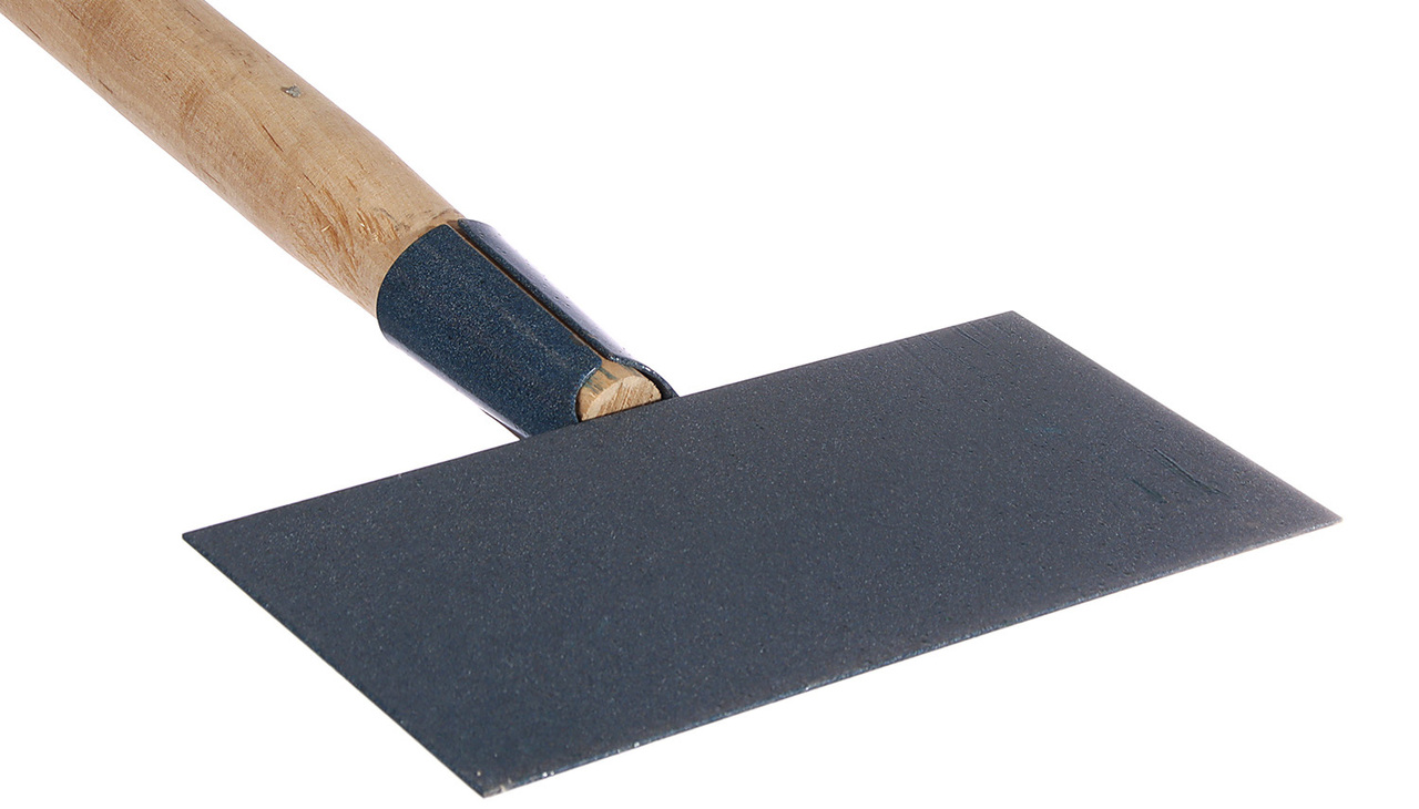 2. Ледоруб-скребок − имеет прямоугольное лезвие, поэтому с его помощью удобно откалывать лед, соскребать снег и наледь с тротуаров и дорожек.