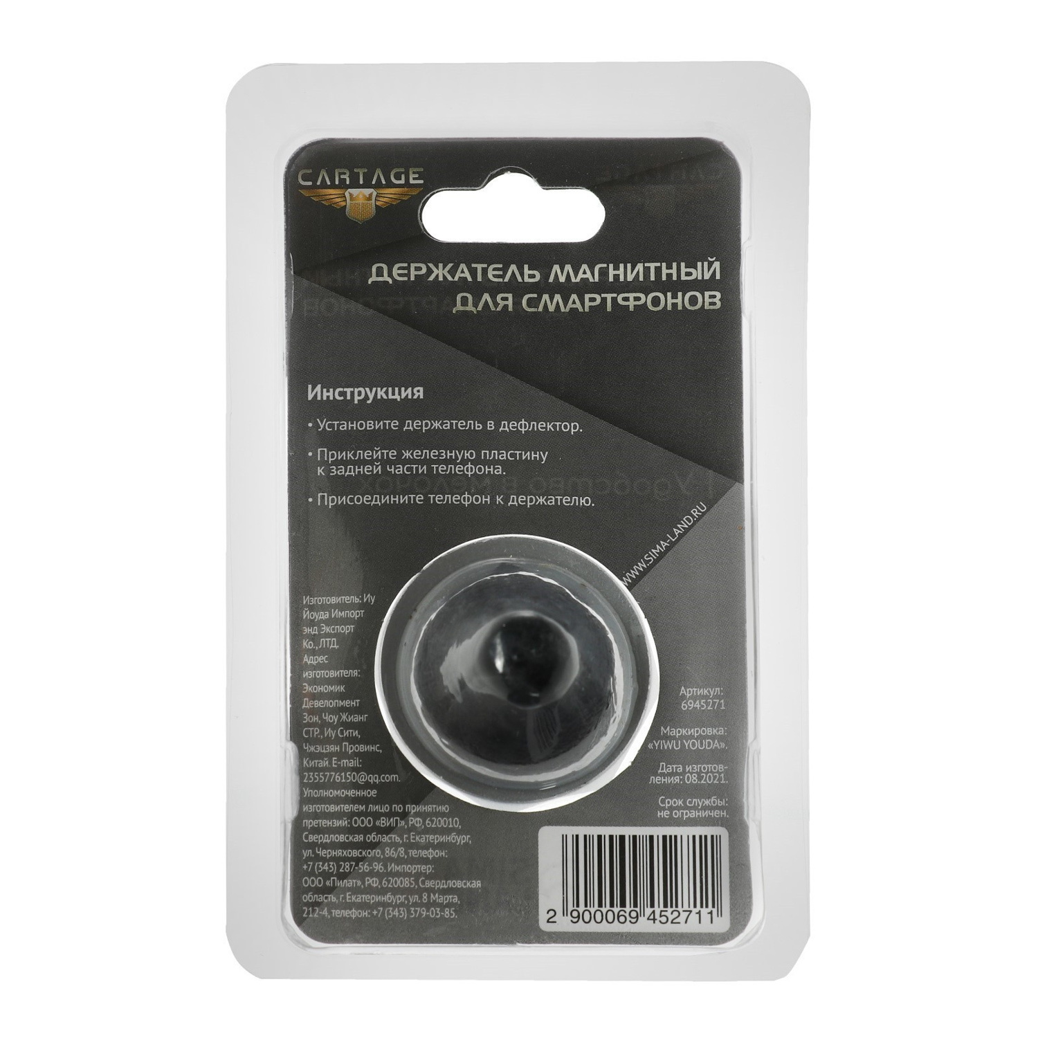 Держатель телефона CARTAGE, магнитный в дефлектор 6945271