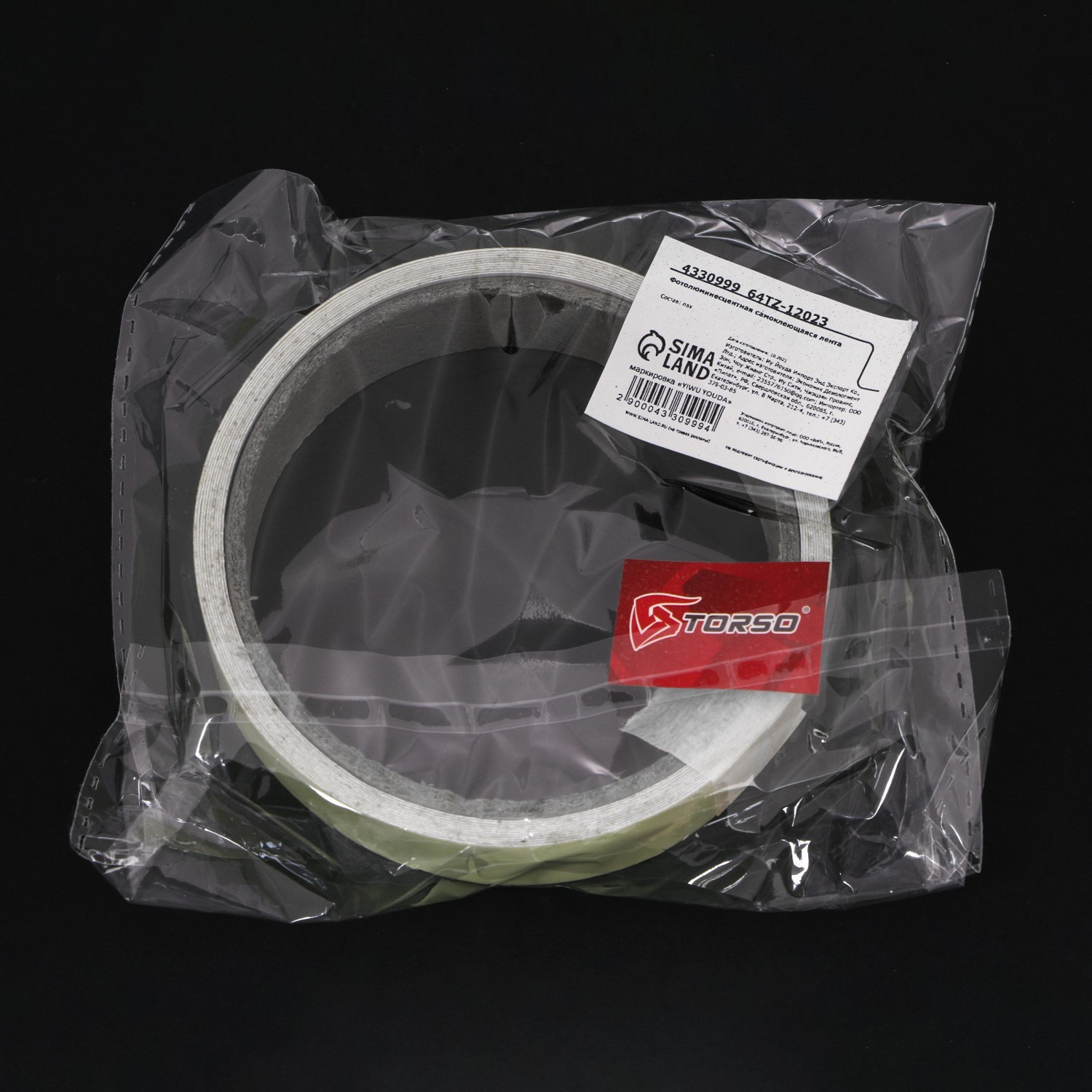 Фотолюминесцентная самоклеящаяся лента TORSO, 2х300 см, зеленое свечение 4330999