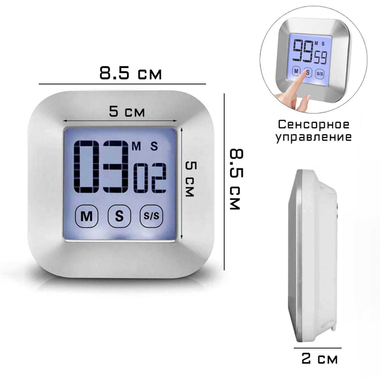 Часы обратного отсчета, на магните, сенсорное управление, 2АAA, 8.5 x 8.5 x 2 см 9021073