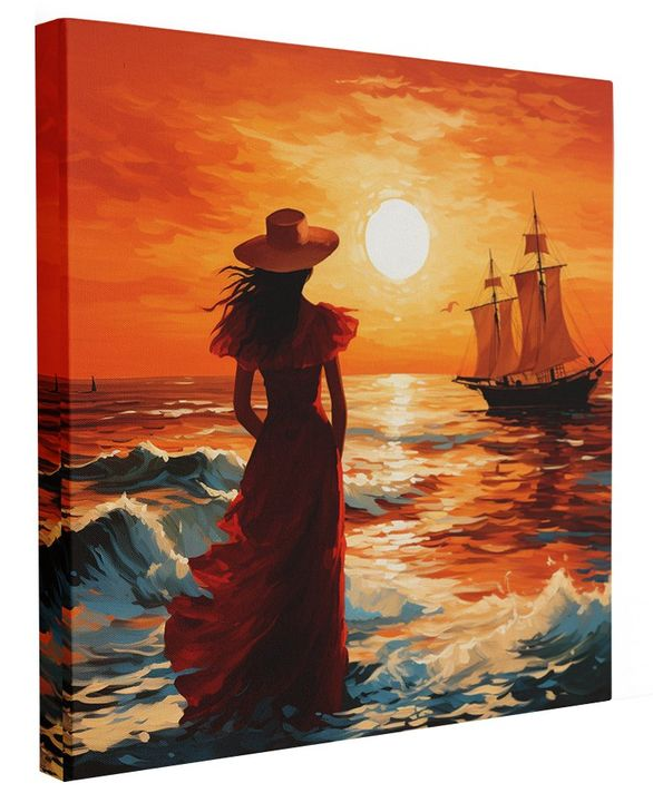 Картина "Алые паруса" на деревянном подрамнике 40х40 см
