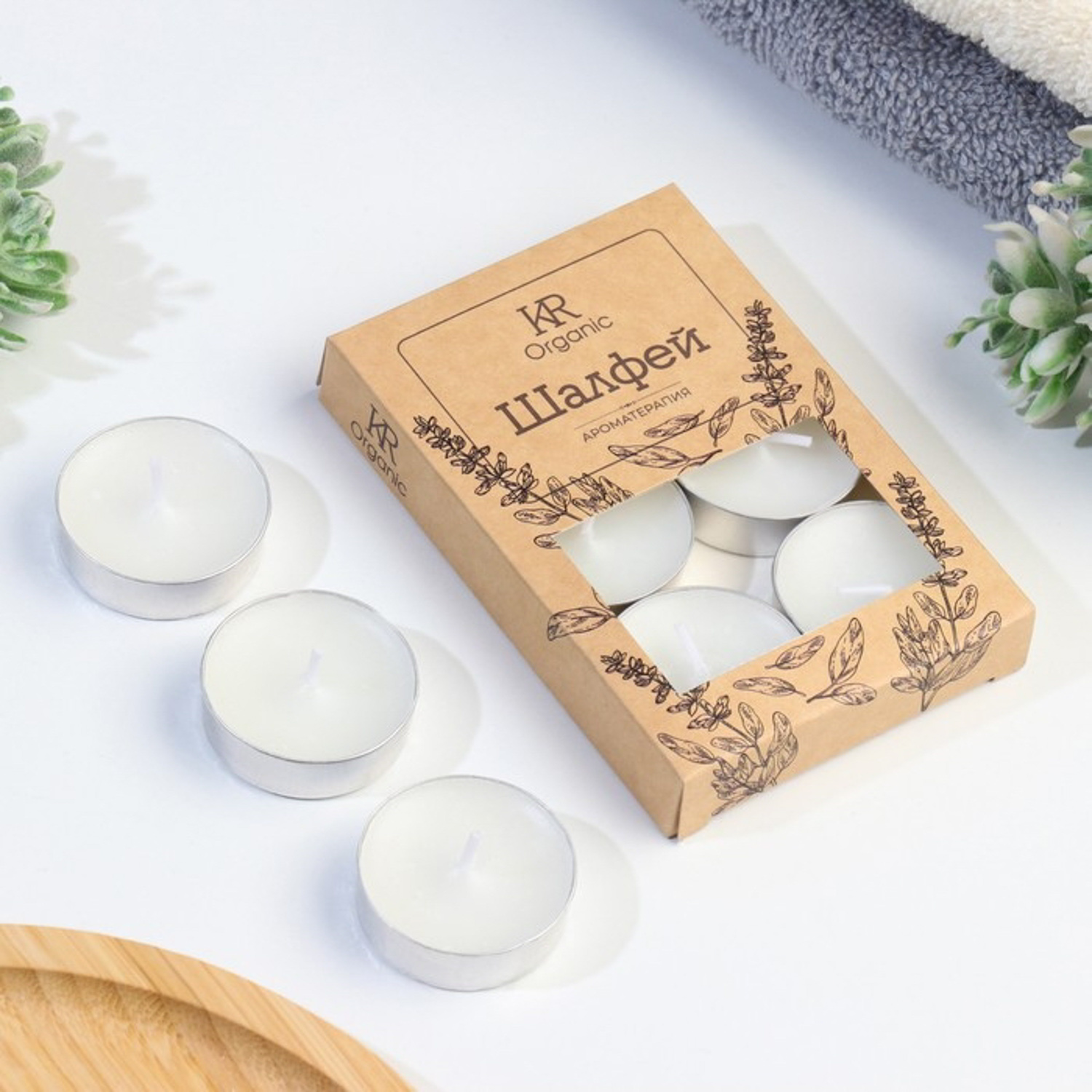 Свеча чайная ароматическая 6 шт.в под.коробке, "Шалфей" 10132774