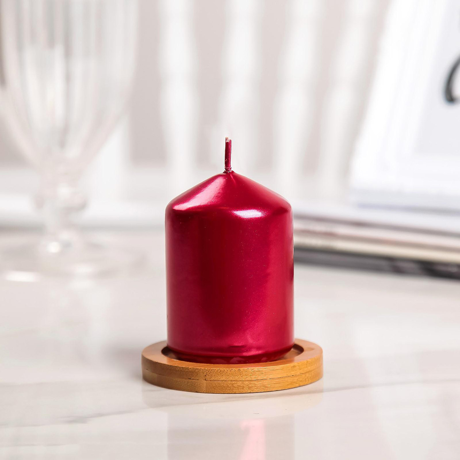 Свеча "Столбик", красный металлик, 5,5×8см 3093213