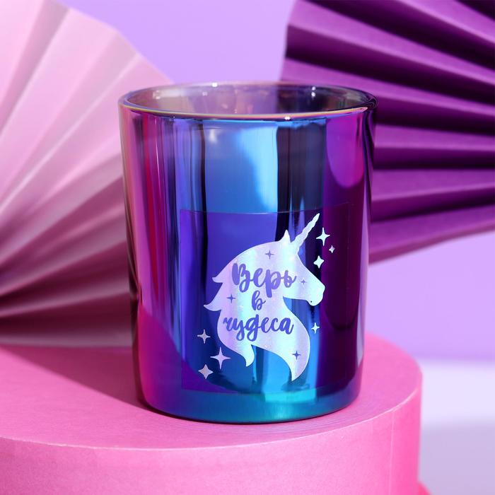 Свеча в голографическом стакане «Верь в чудеса», 8,5 х 8 х 8 см   5077511