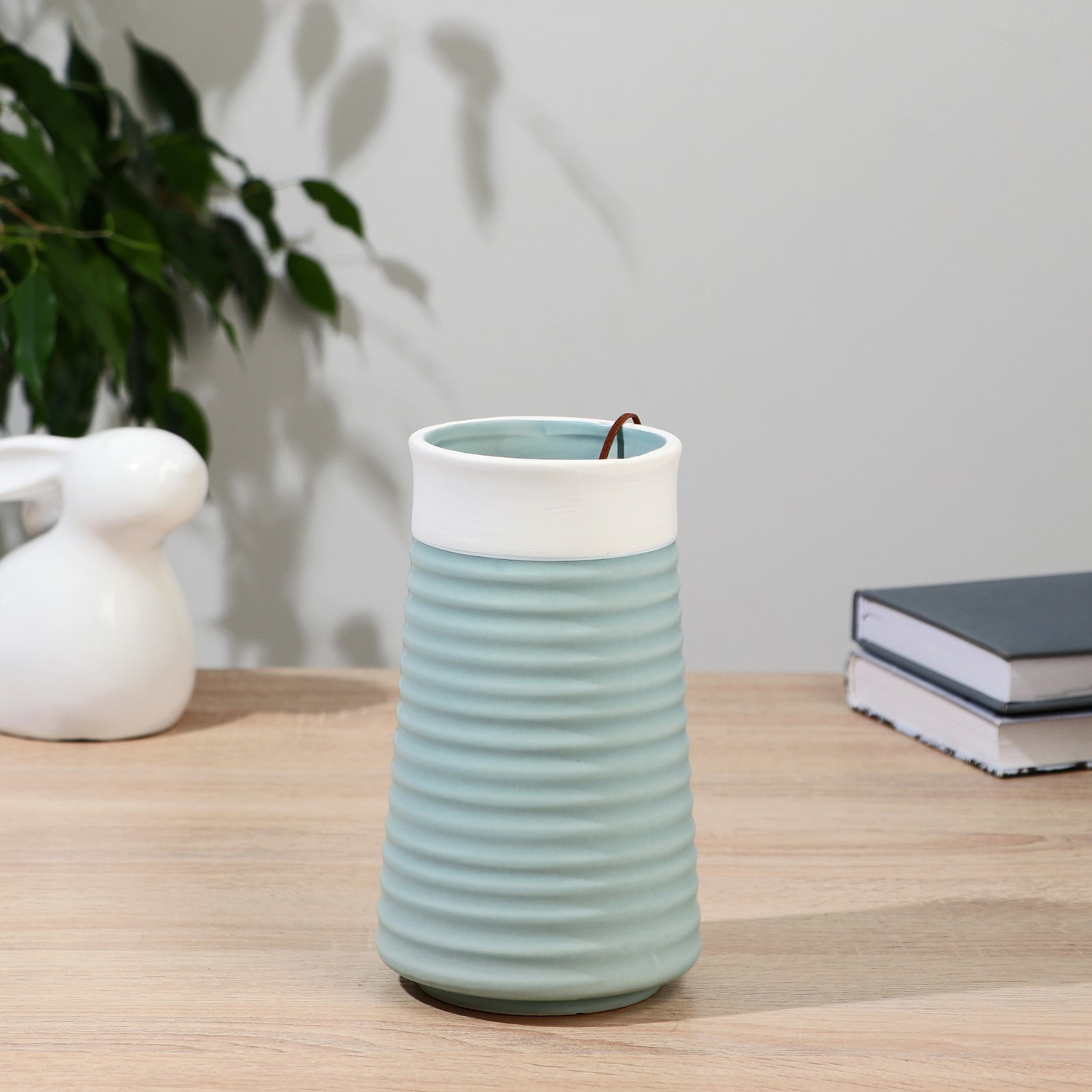 Ваза керамика "Лиам" натура, d-8,5х10 см h-18 см, бело-голубой 9499279