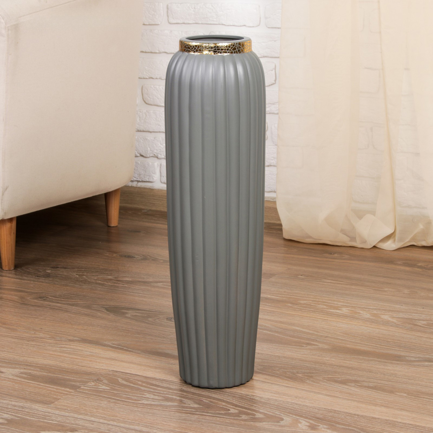 Ваза напольная «Геометрия люкс», вертикаль, d=9.5 см, h=60 см, керамика, серая, 4291185