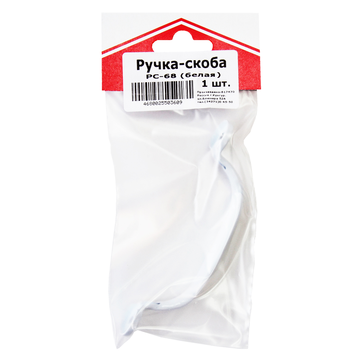 Ручка-скоба 68мм белая (индивидуальная упаковка) цельнотянутая ДомоСтрой *10