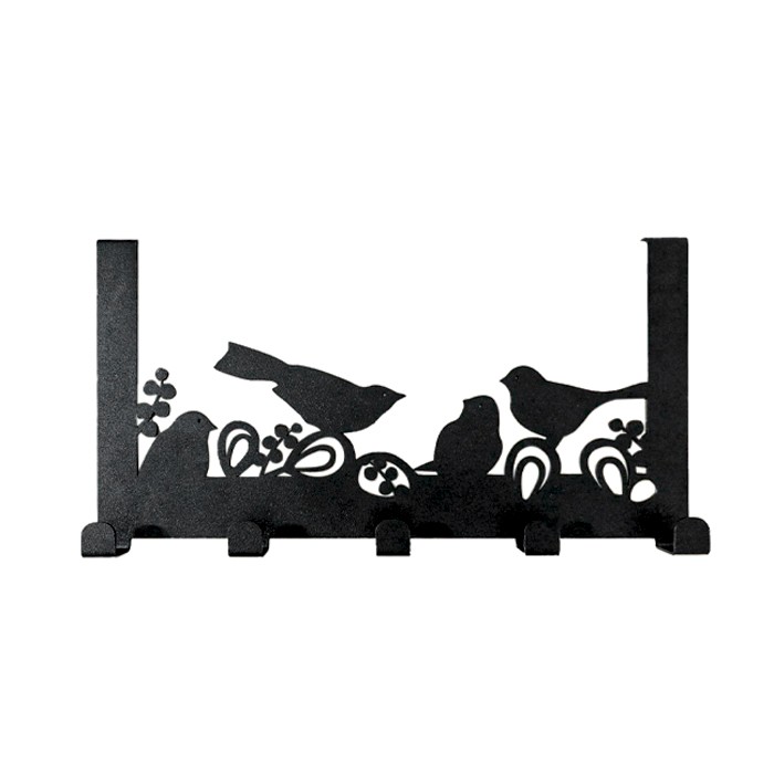 яяяВешалка на дверь на 5 крючков "Птицы" металл 36х18,5х6см черная Verda Line *1/100