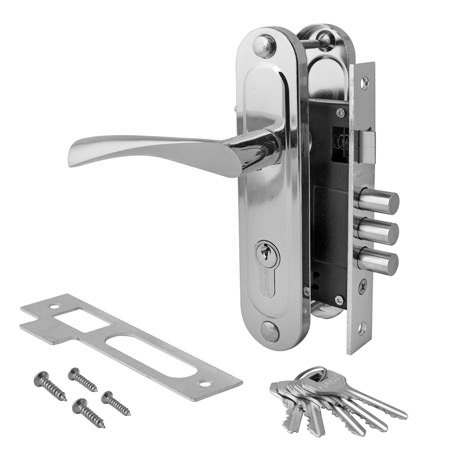 Замок врезной 61,5мм хром,Ал.ручки, 3 ригеля 1023/60-CR Апекс *1/20
