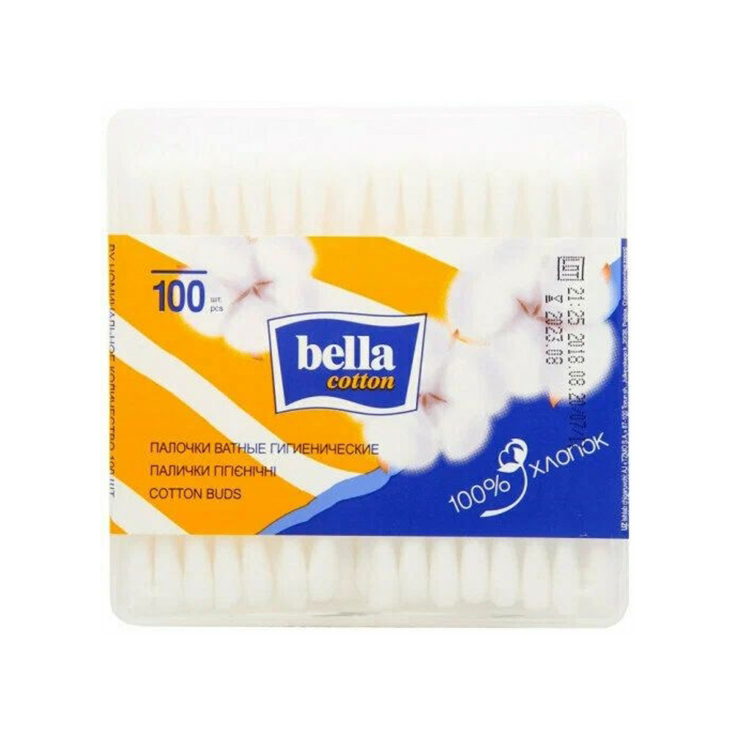 яяяВатные палочки Белла 100 шт. квадрат *1