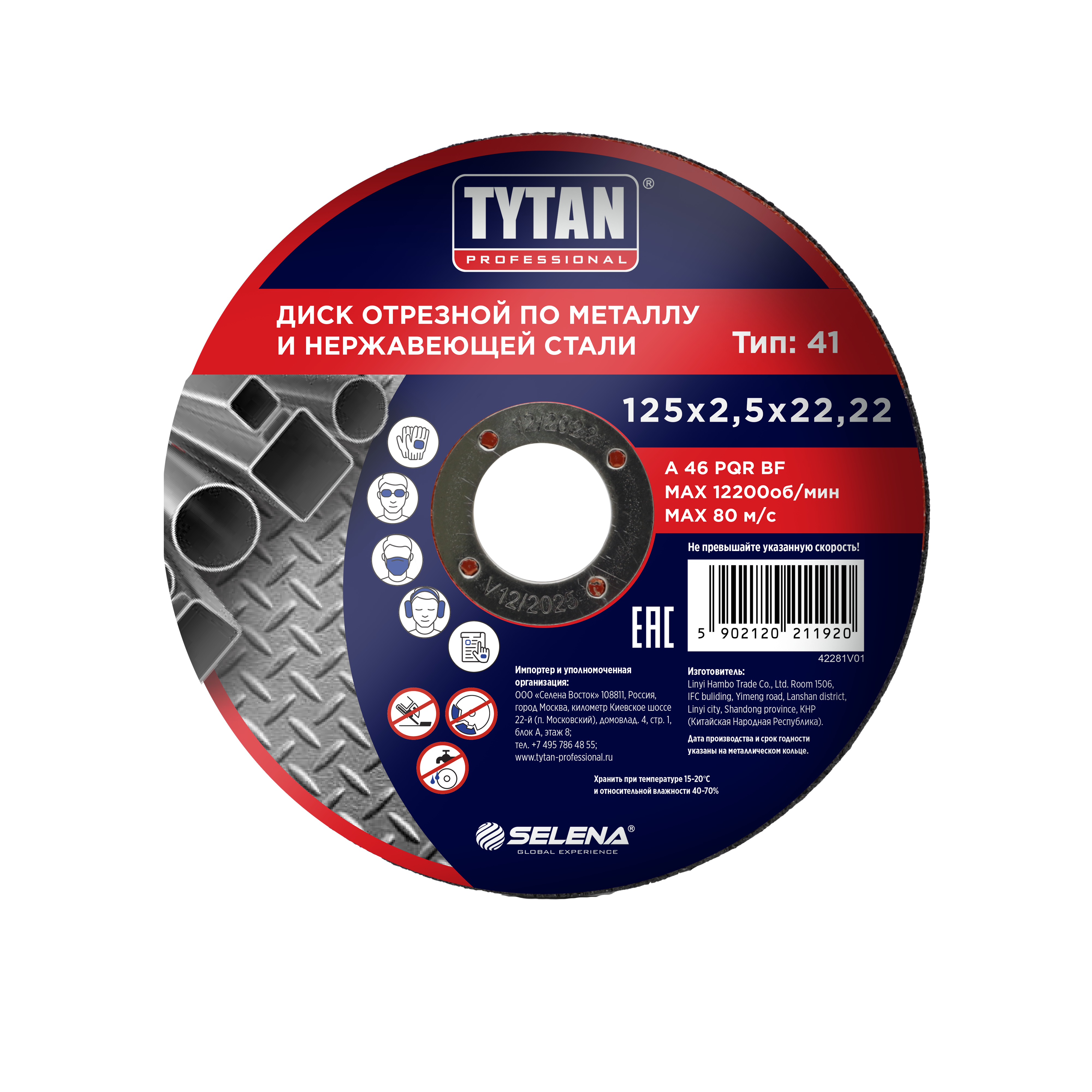 Круг отрезной 125*2,5*22.22 по металлу и нержавеющей стали арт.11920 TYTAN *10/50/200