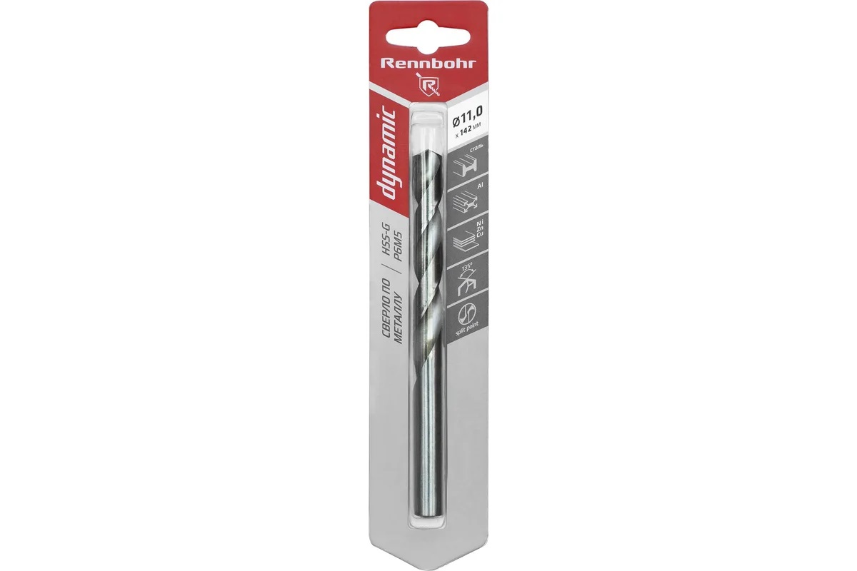 Сверло по металлу11,00*142/94мм HSS-G P6M5 (1шт) блистер арт.675110 DYNAMIC RENNBOHR *6/30/150