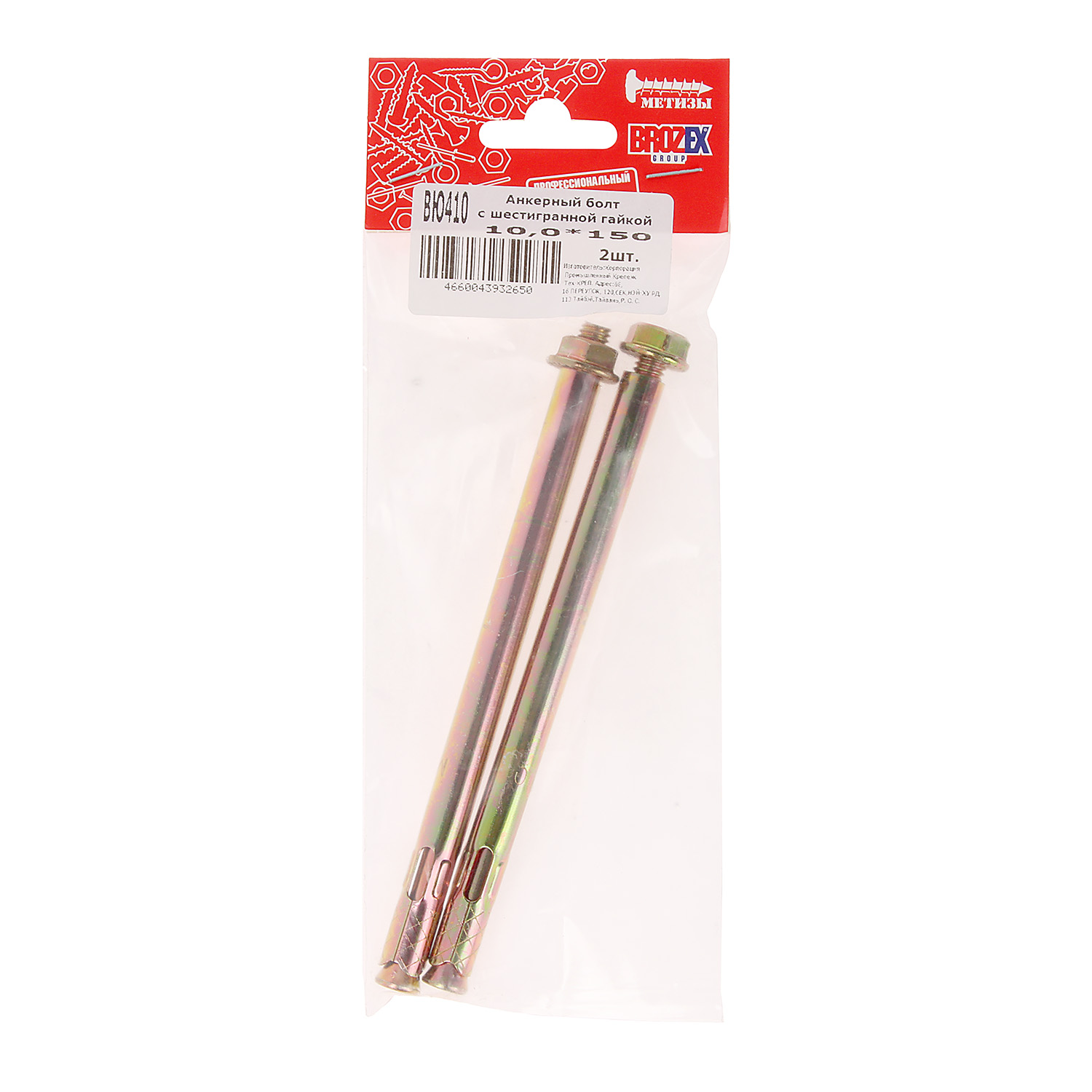 Анкер с гайкой 10х150 (2шт) пакет BROZEX  *10/100