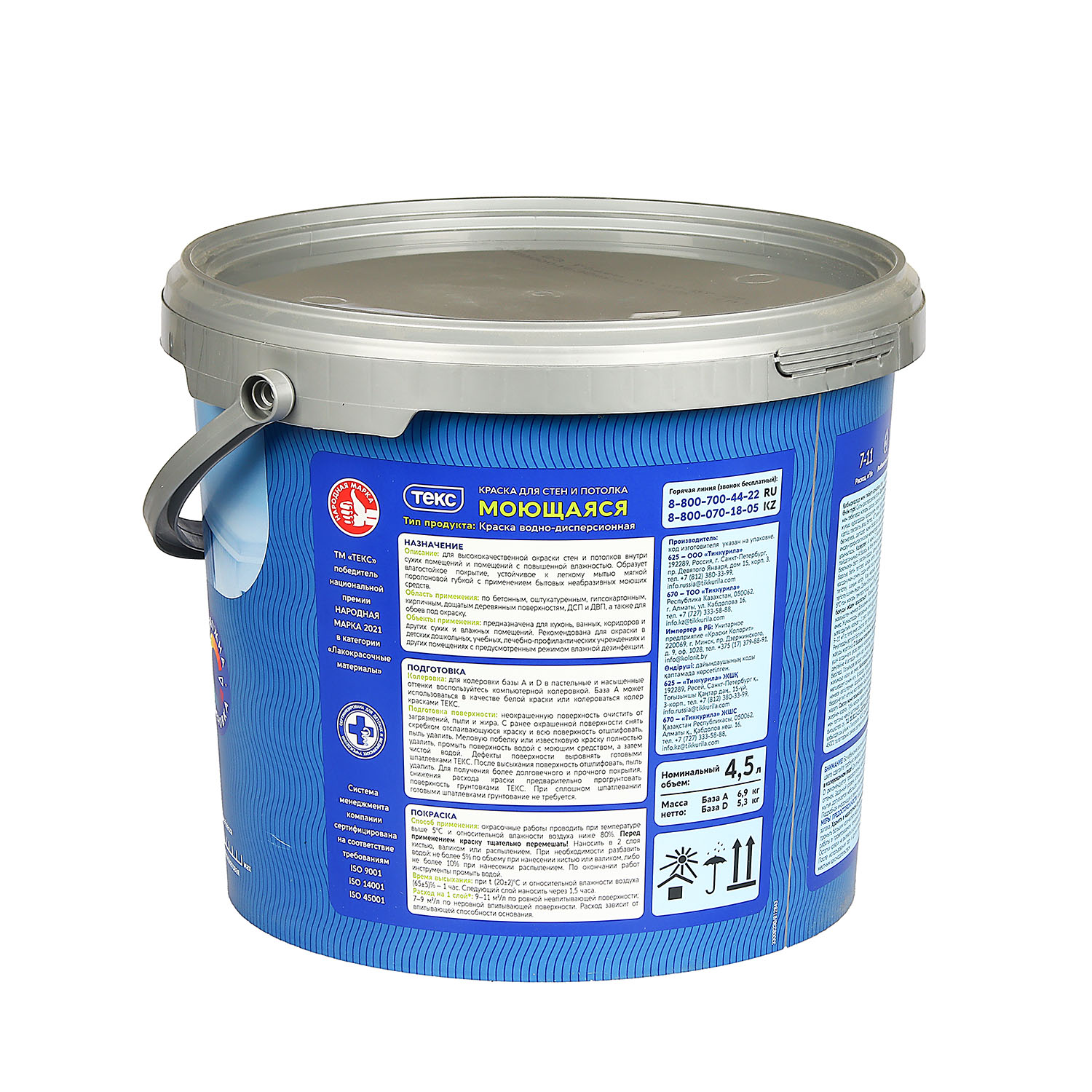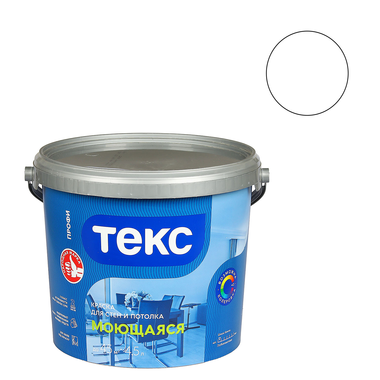 Краска акриловая для стен и потолков 4,5 л ТЕКС "Профи" моющаяся База A *1/44