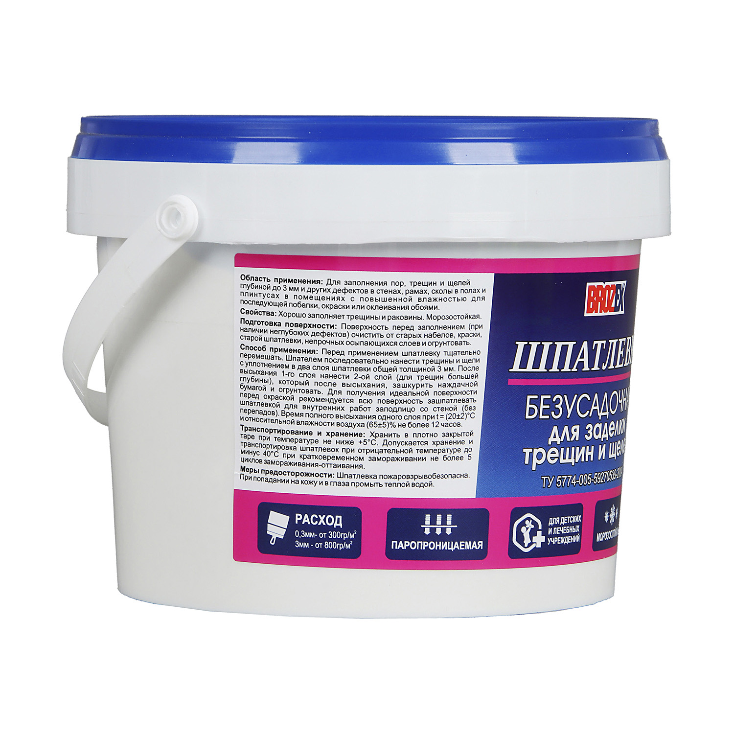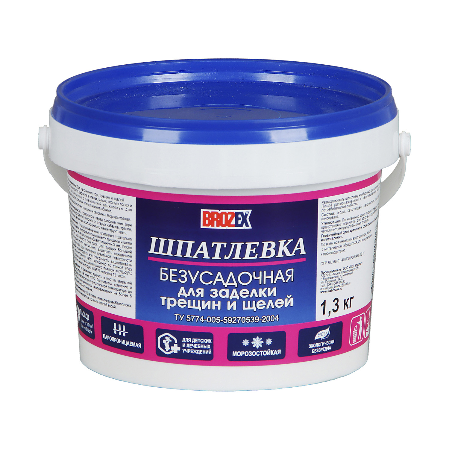 Шпатлевка безусадочная для трещин и щелей BROZEX 1.3 кг хорошо заполняет трещины, раковины и прочие дефекты в стенах, рамах, полах, плинтусах под последующую побелку, окраску или оклеивание обоями. Образует ровное прочное покрытие.