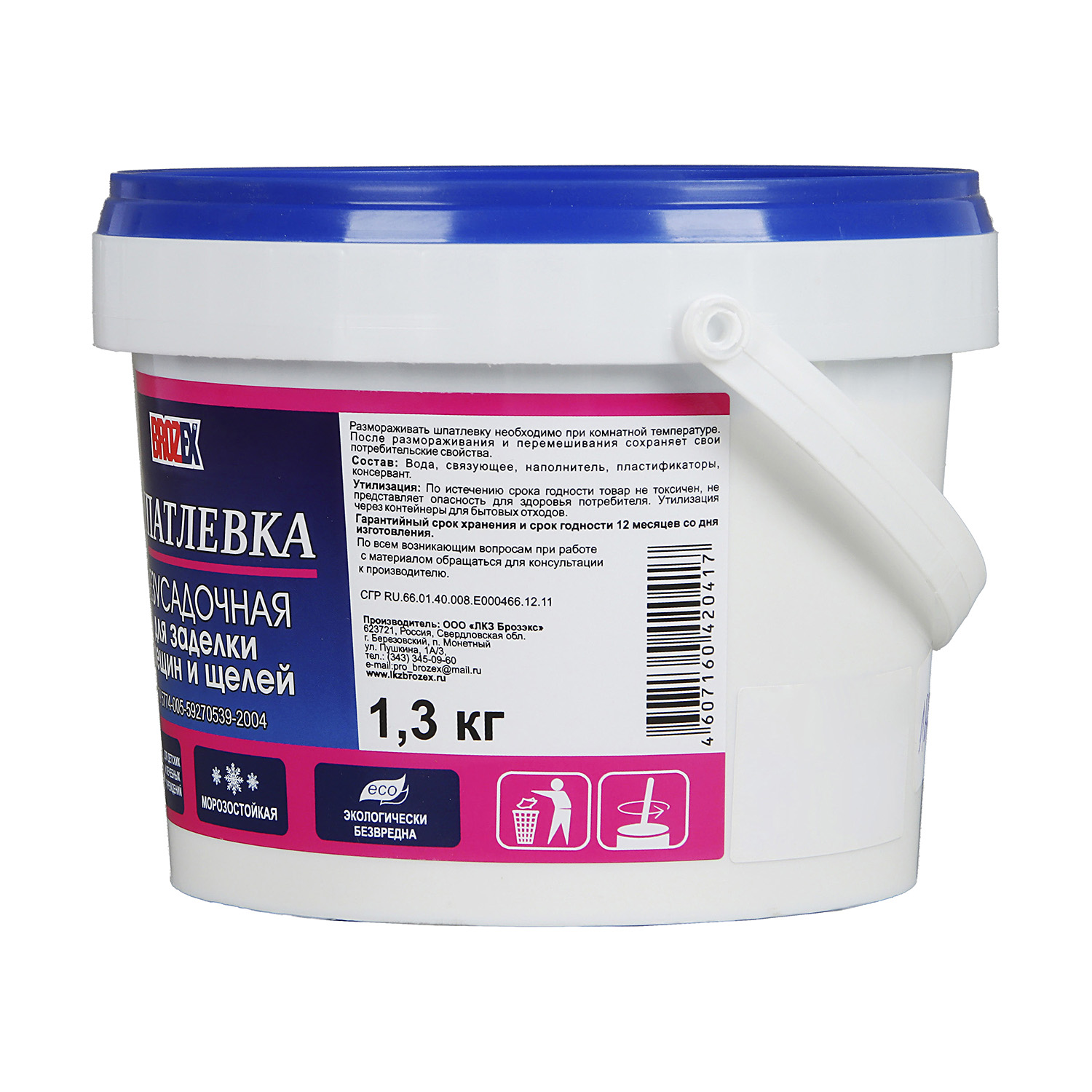 Шпатлевка безусадочная для трещин и щелей 1.3 кг BROZEX