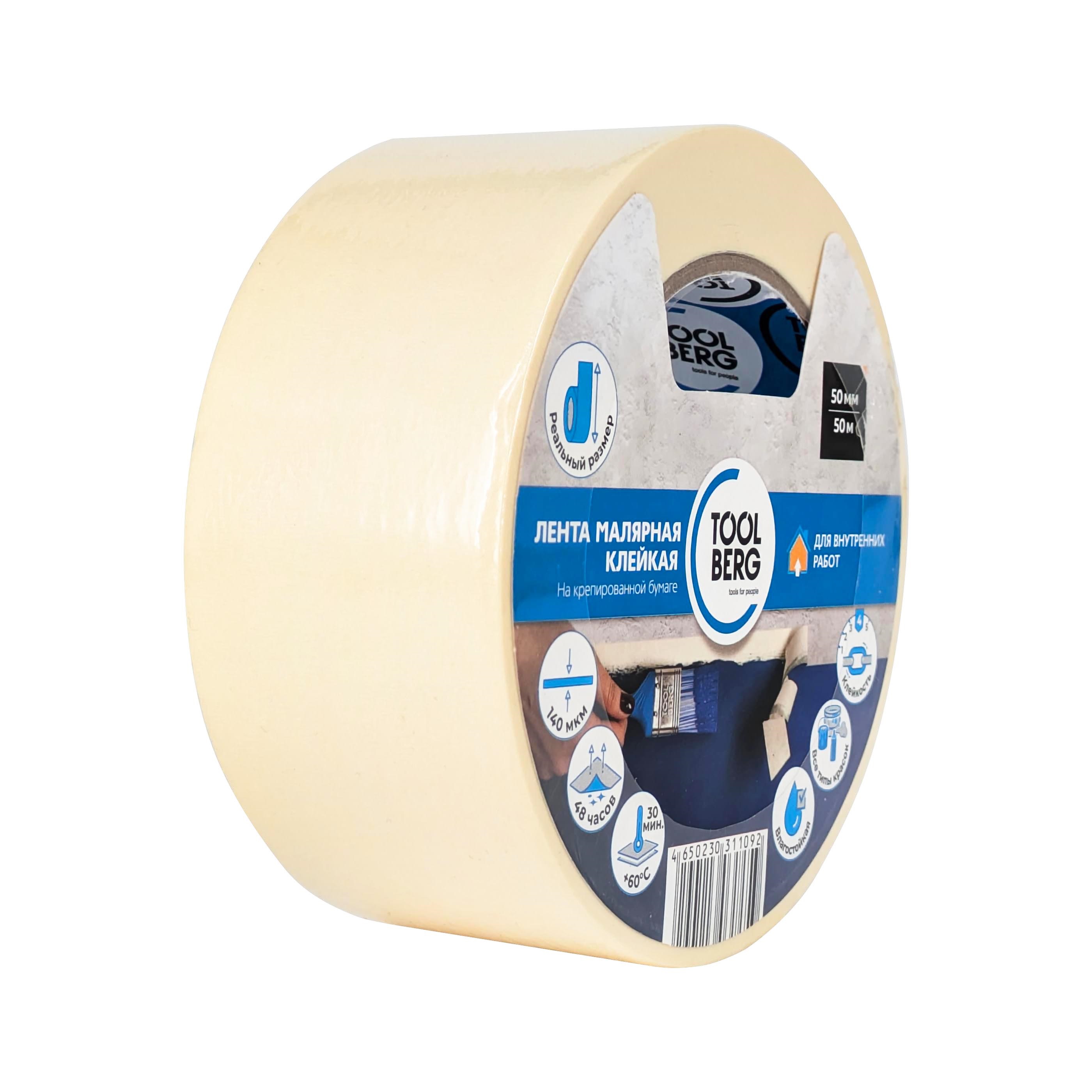 Лента клейкая малярная 50мм х 50м 2010170 "TOOLBERG" *1/36