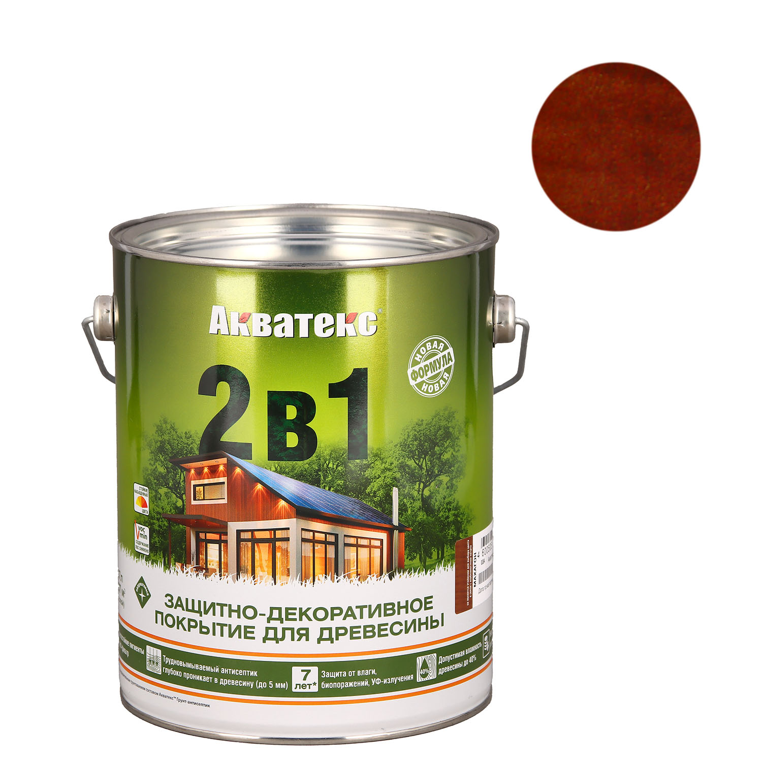 Защитно-декоративное покрытие 2.7 л для древесины АКВАТЕКС 2 в 1, алкидное, махагон
