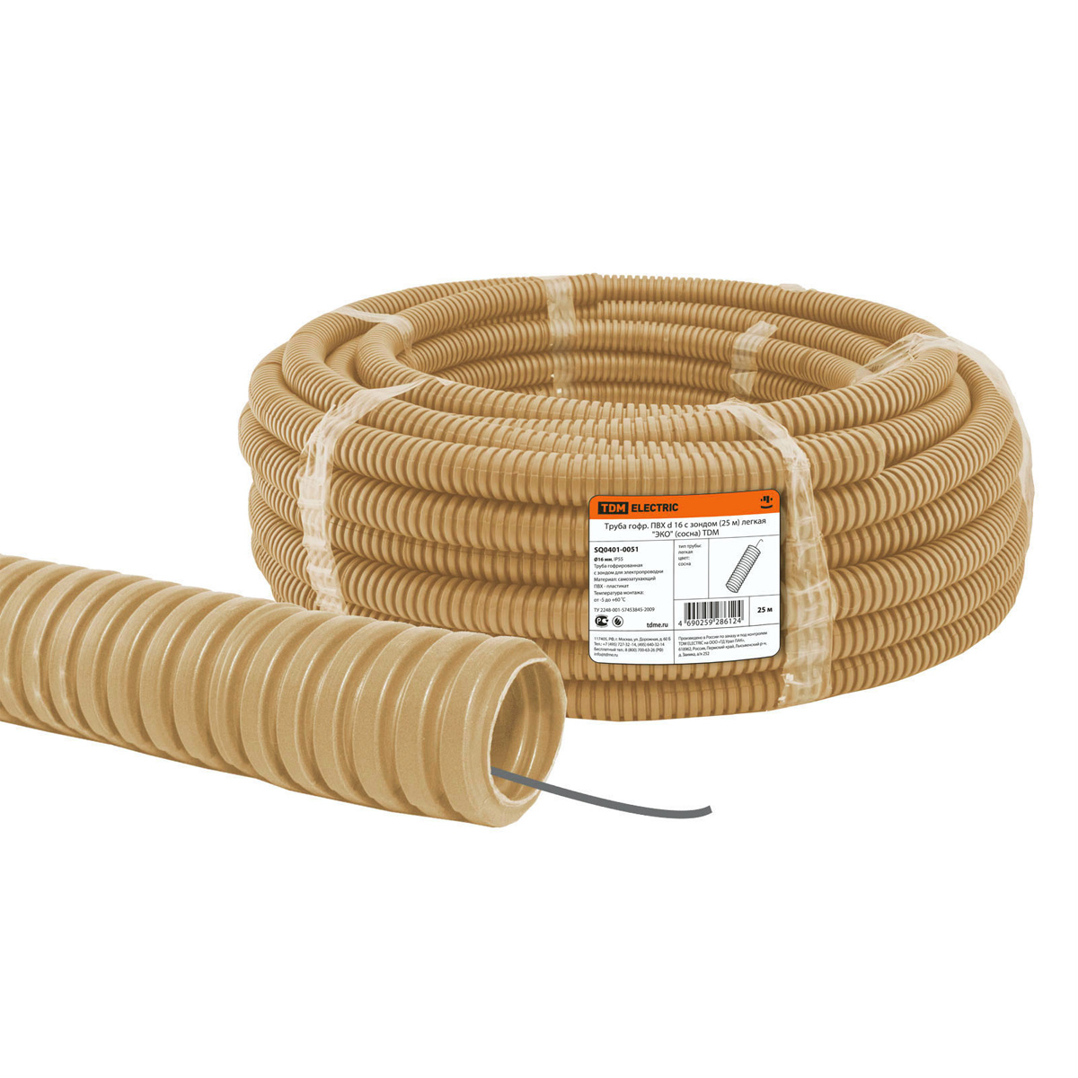 Труба ПВХ гофро с зонд. d25мм(25м) "Эко" СОСНА TDM SQ0401-0053  *1