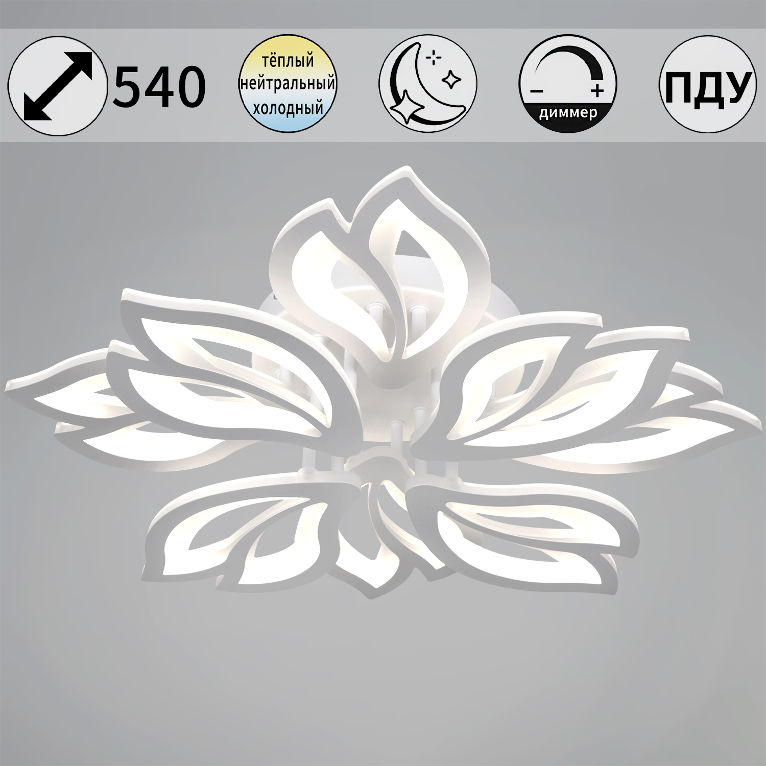 Светильник потолочный светодиодный 00150-0.3-4+4 WH LED 3000-6500К 144W ПДУ ПДУ+диммер S=26м2 *1/10