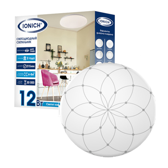 Светильник светодиодный акриловый 215мм IONICH "Альтаир" 12Вт 6000-6500К 850Лм S=6-8м2 1695*1/40