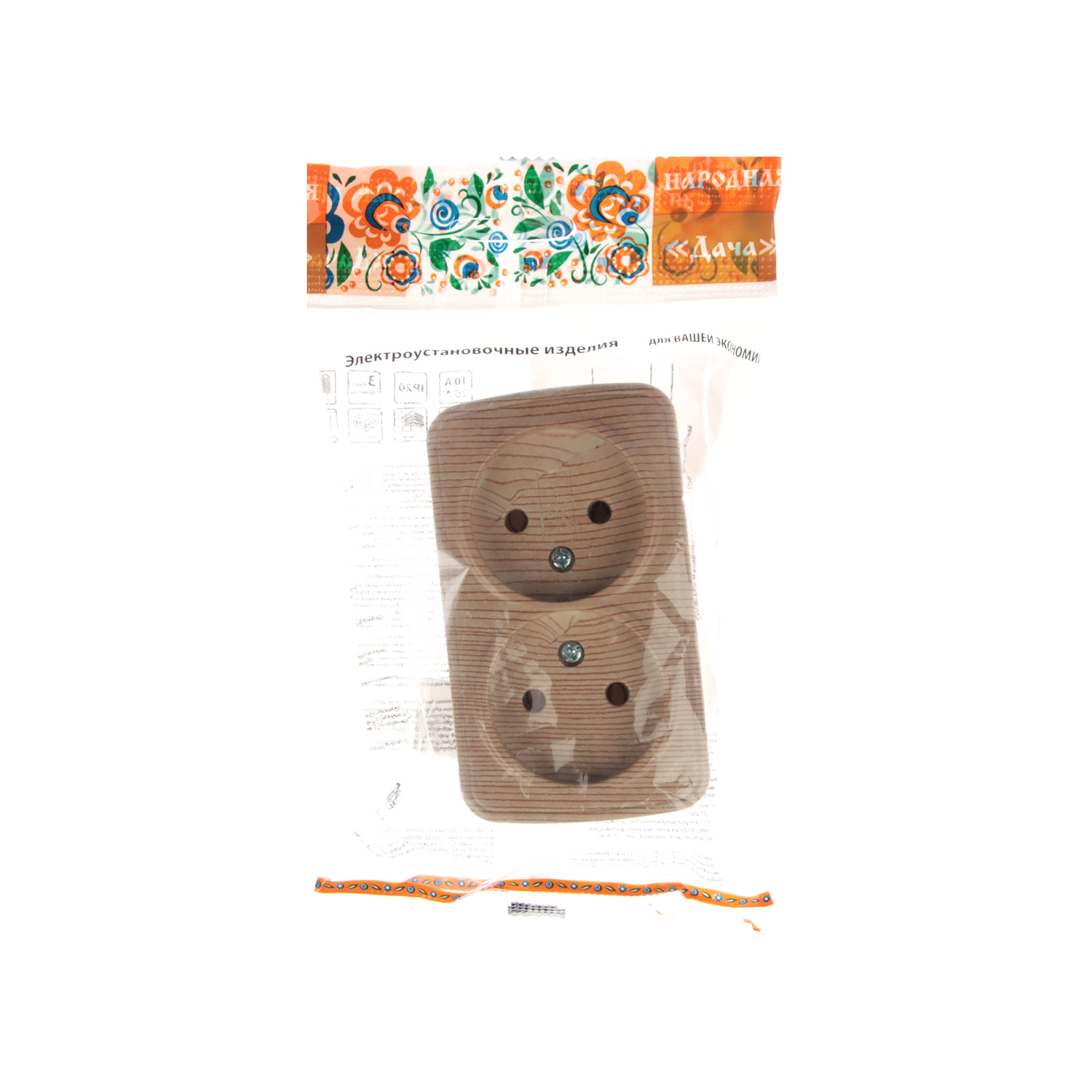 Розетка Дача ОП 2-мест. сосна бз А10 Народная SQ1824-0039