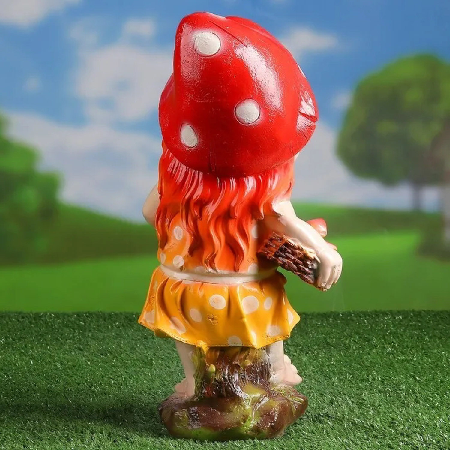 Садовая фигура "Гномиха с мухоморами и лопатой" 34х19см 3467701