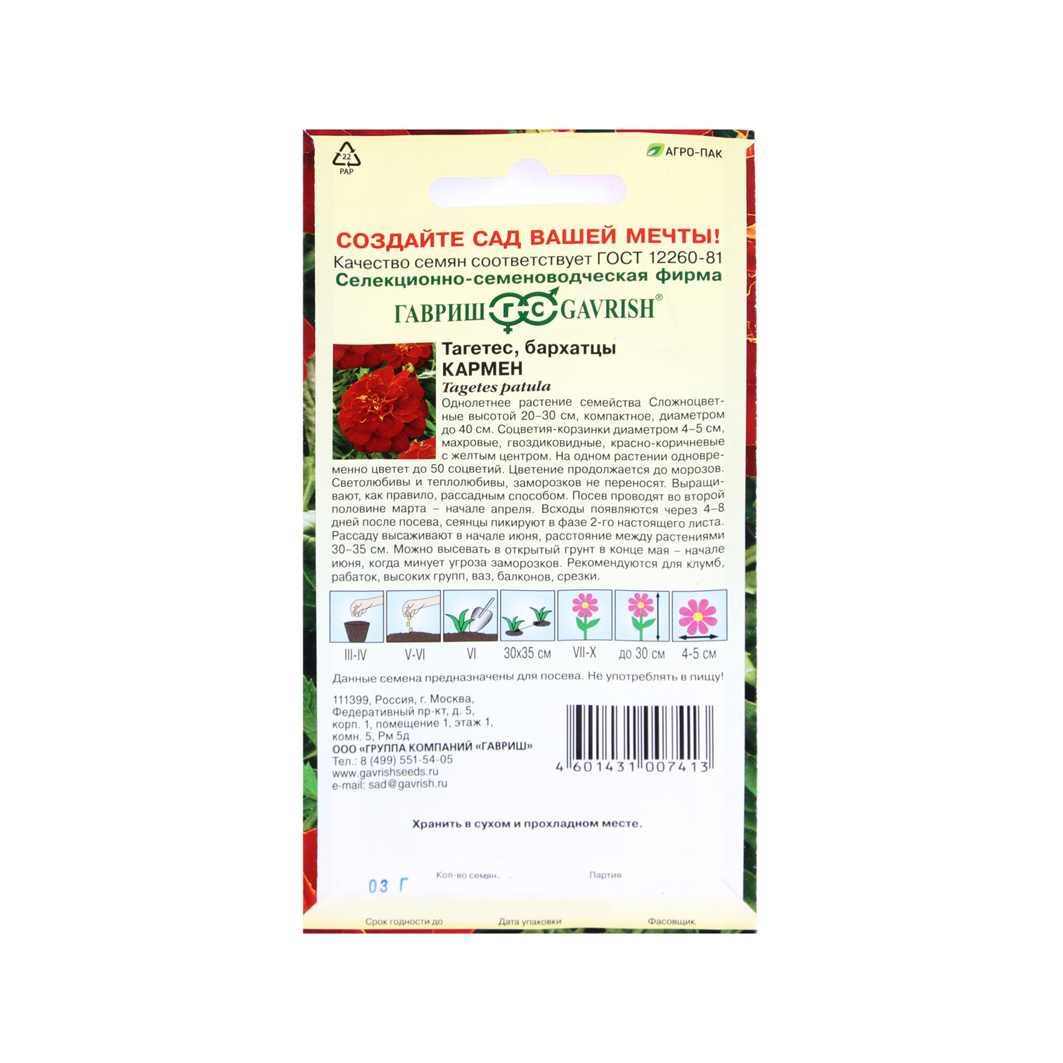 Семена Бархатцы Кармен отклоненные 0,3гр Гавриш *10/200