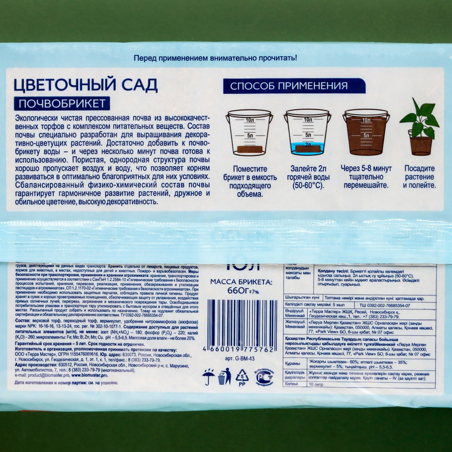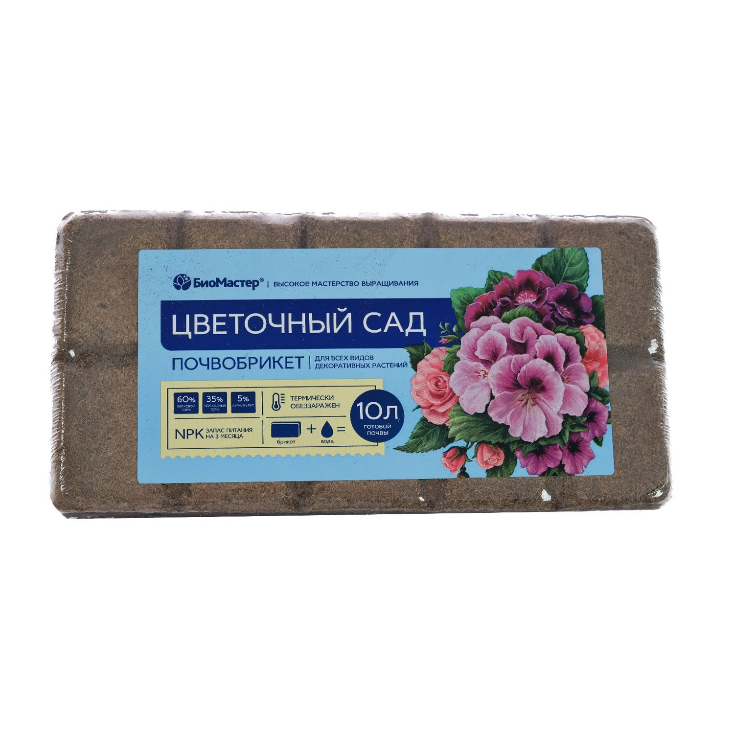 Почва из почвобрикета обладает отличными физическими свойствами и прекрасно поддерживает оптимальную влажность. Такой грунт обеспечивает здоровый рост растений и развитие корневой системы. Верховой торф придает готовой почве великолепную воздухопроницаемость, высокую водоудерживающую способность при оптимальной физиологической влагоотдаче. Переходный торф обогащает почву гуминовыми веществами, что повышает ее плодородие. Вермикулит аккумулирует воду и улучшает обменные свойства почвы, а стартовый комплекс питательных элементов поддерживает рост растений. Больше ничего не нужно добавлять, в почве есть все необходимое.
