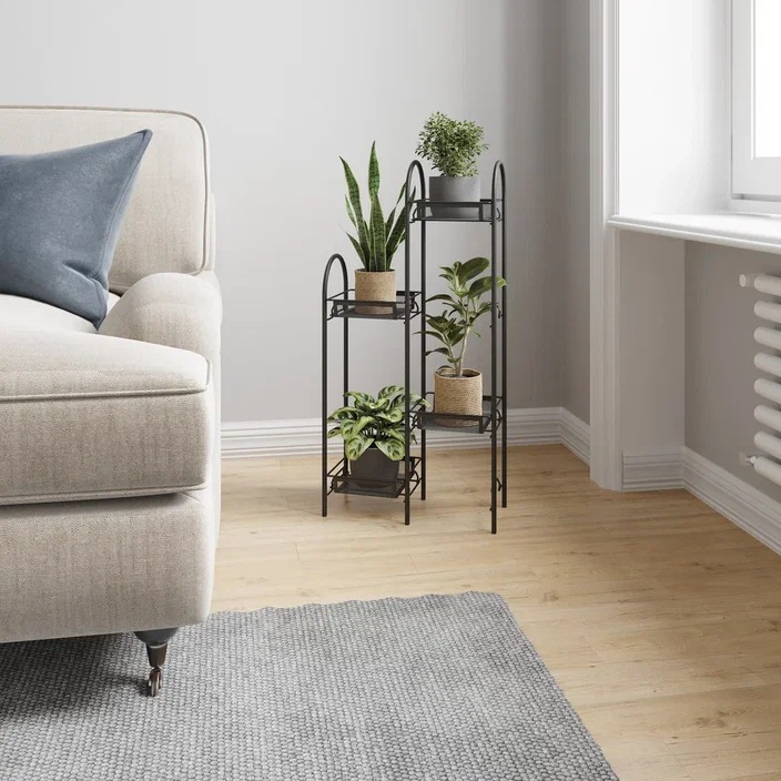 Этажерка для цвет.кашпо металл. "Лира 24" 4-х местн., ш.0,37м,в.0,75м,гл.0,17м Черный ПДЦЛ24Ч *1