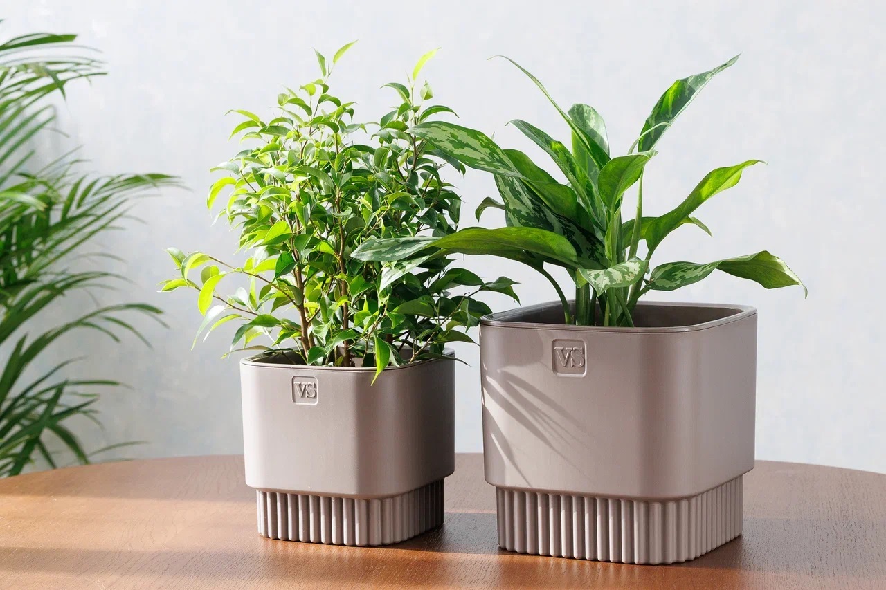 Кашпо пластм. "Бостон" 2,7л 153х153мм h147мм со вставкой Шоколад АМБ-2,7-04 ("VipSet") *1/10