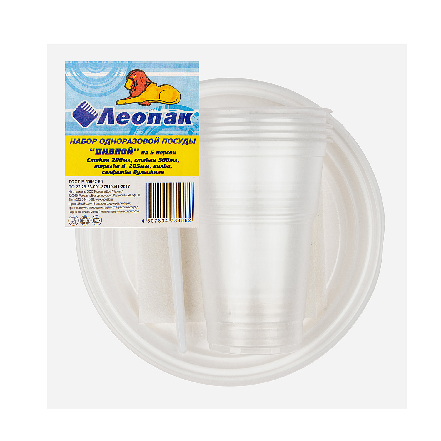 Одноразовая посуда Набор "Пивной" 5перс/25пр.: тар.d205мм+стаканы0,2л+стаканы0,5л+вилки+салф. *1/25