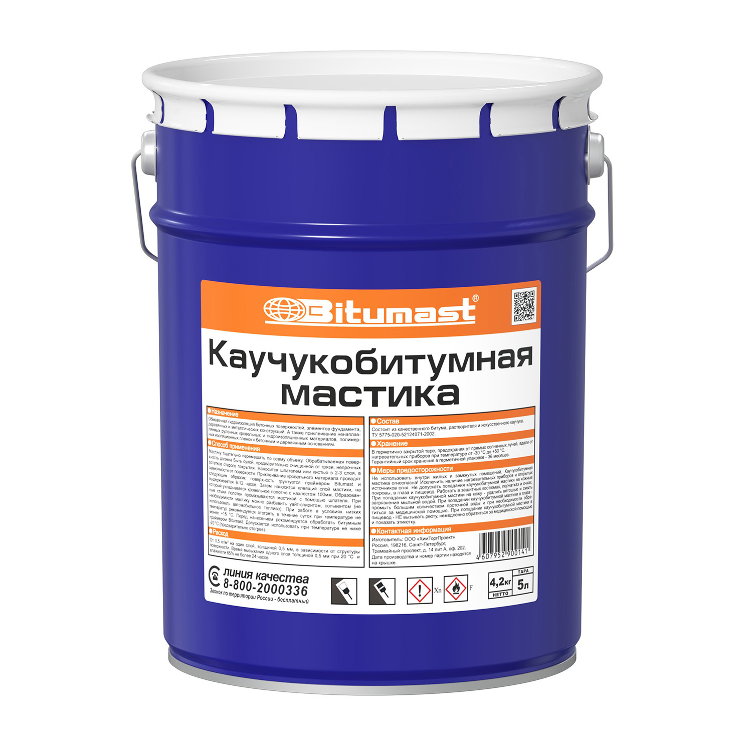 Мастика каучукобитумная Bitumast 5 л представляет собой полностью готовый к применению продукт на основе нефтяного битума, модифицированного искусственным каучуком, органического растворителя, пластификатора.