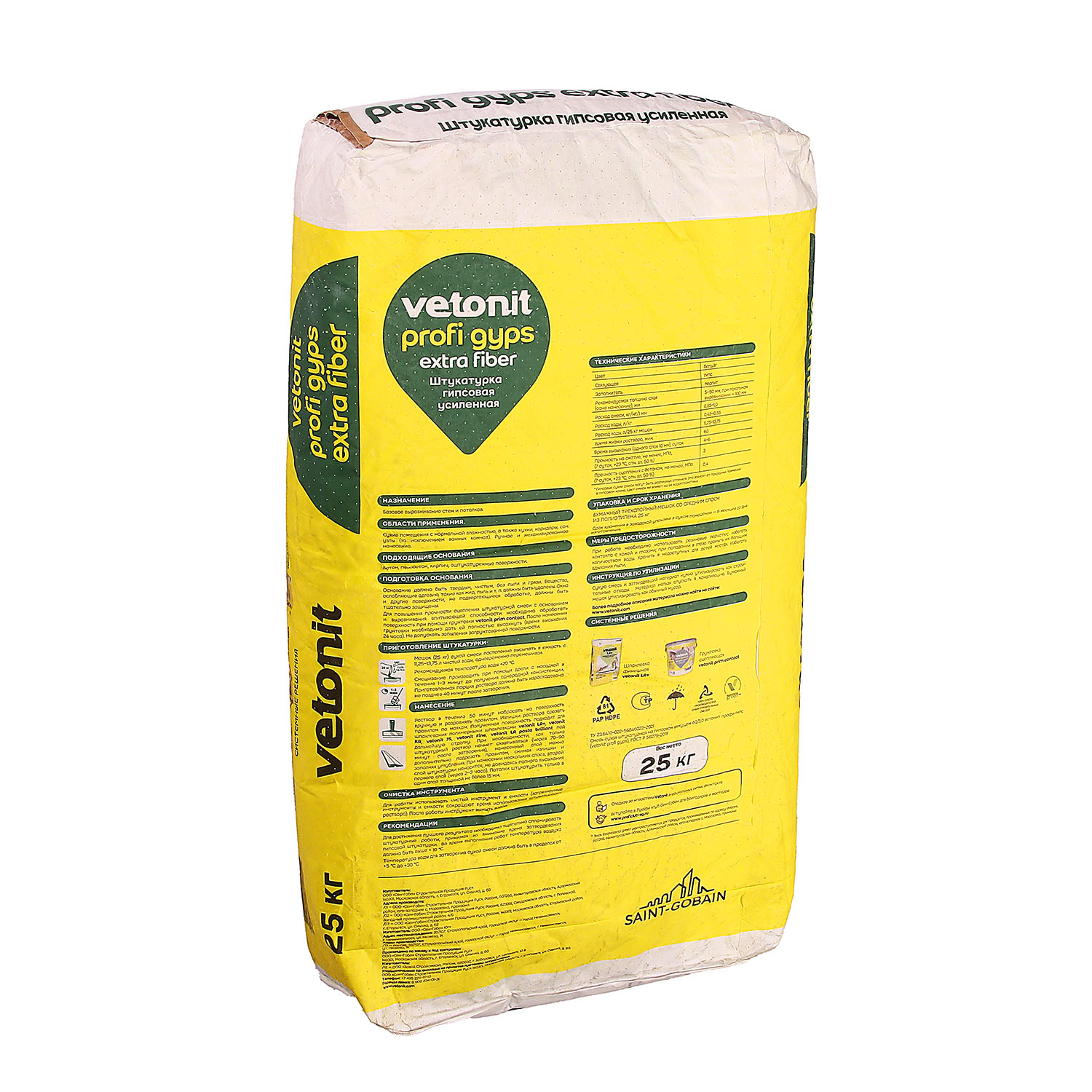 шт кгШтукатурка на основе гипса с полимерными добавками Vetonit profi gyps предназначена для базового выравнивания стен и потолков. Трещиностойкая, благодаря армировке микроволокном. Легко набрасывается и разравнивается, суперпластичная. Гарантирует высокое качество финишной поверхности. Толщина слоя — от 5 до 50 мм (локально до 100 мм).