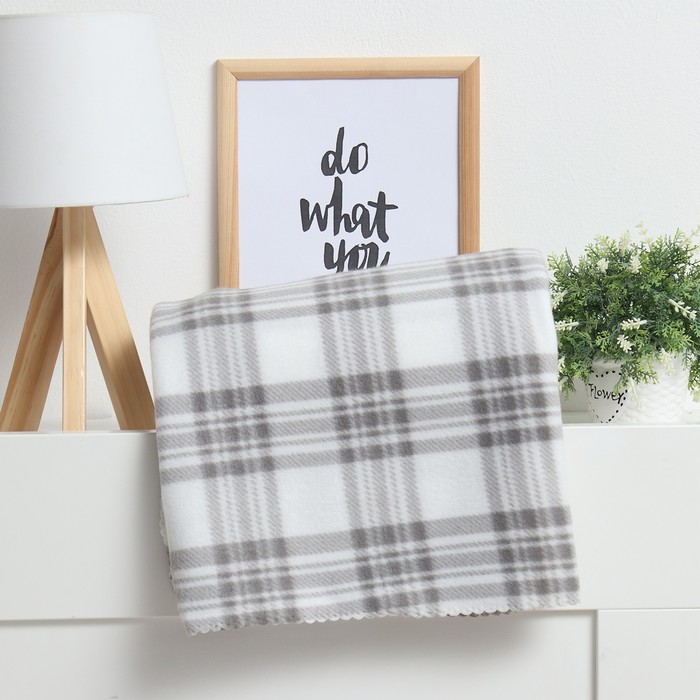 Плед 130*150см флисовый Клетка черно-белый Экономь и Я *1/12