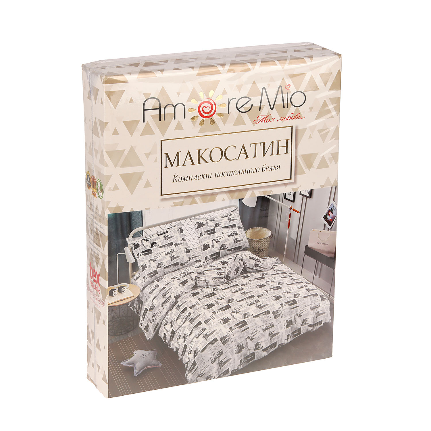 Постельное белье 1,5сп макосатин Amore Mio 24476 Trip белый, наволочки 70*70 - 2шт *1