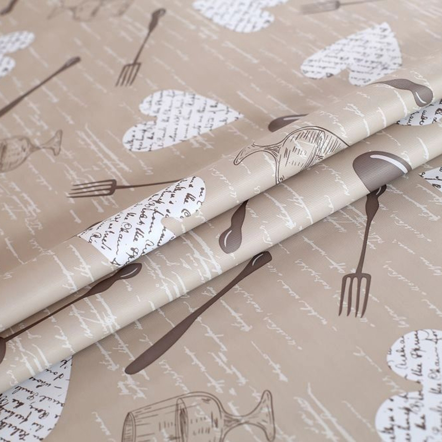 Клеёнка на тканевой основе "Print" "Сердечки на бежевом" шир.1,37м GW-21321 "Great Way" *20