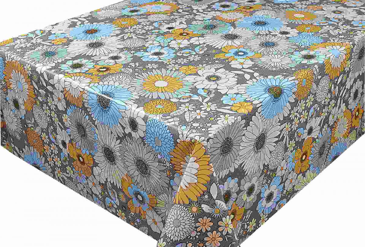 Клеёнка на нетканой основе "Carnelia" " Цветы " жел.-бел.-гол. на сером шир.1,4м CL-512A(L) *20