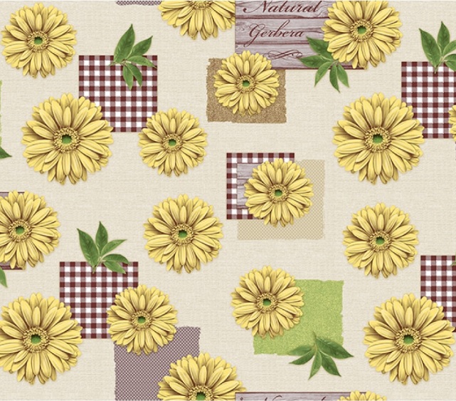 Клеёнка на нетканой основе "Мажор" "Герберы желтые" на бежев. шир.1,35м 621/2 "Колорит" *20
