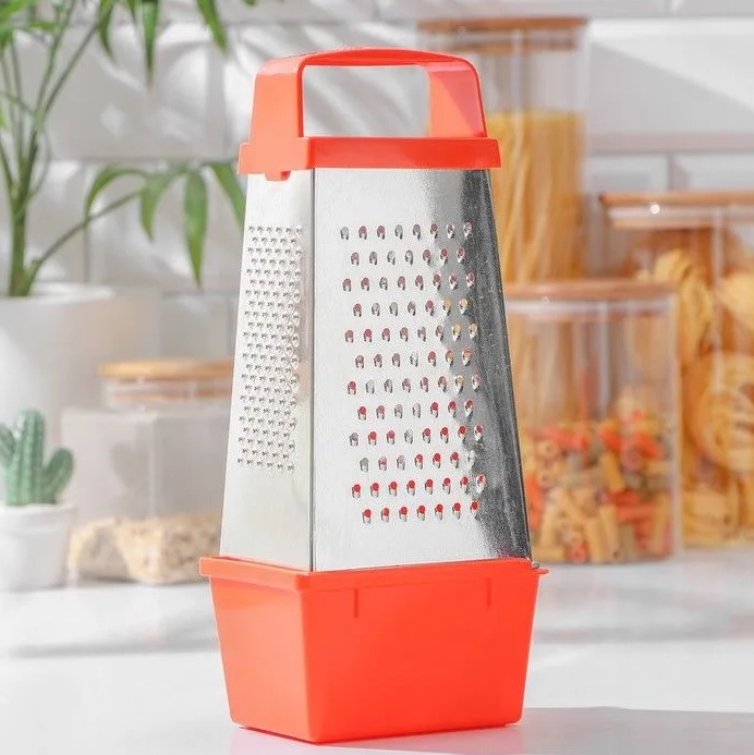 Терка металл. нерж. 4-х стор. пластм.ручка, пирамид, с Контейром 270х85х110мм К01.002.03"Кварц"*1/25