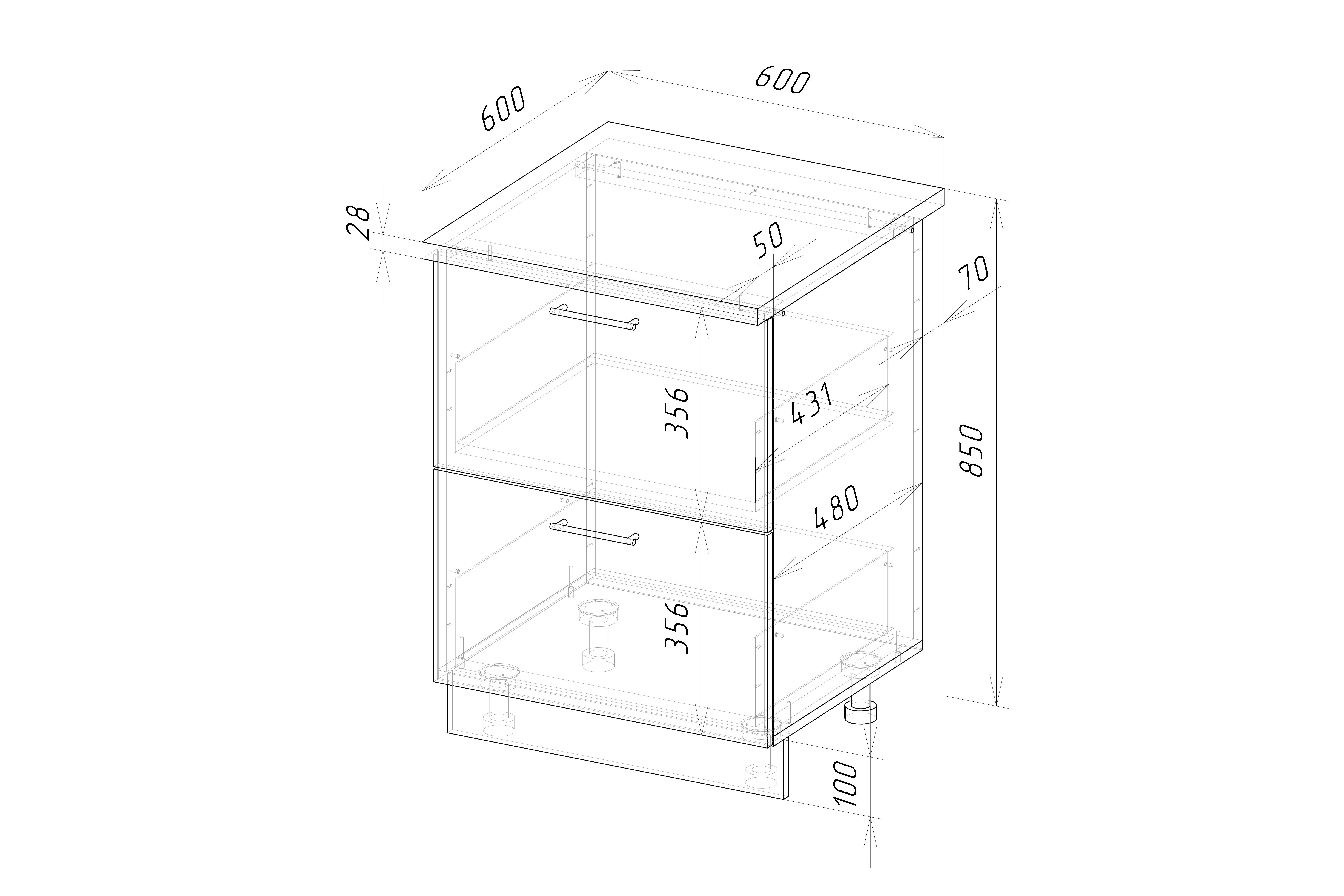 Корпус стола рабочего 600х850х600 мм ГЕРДА, 2 ящика, белый