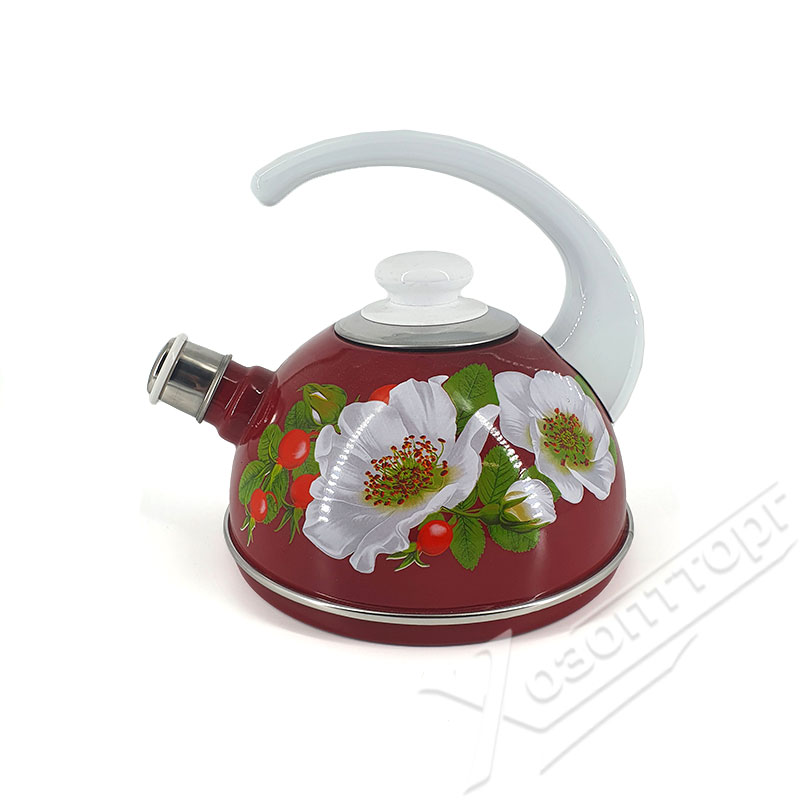 яяяЧайник эмалированный со свистком 2,5л декор "Маричка" Бордовый T04/25/01/33/H03 *1/4