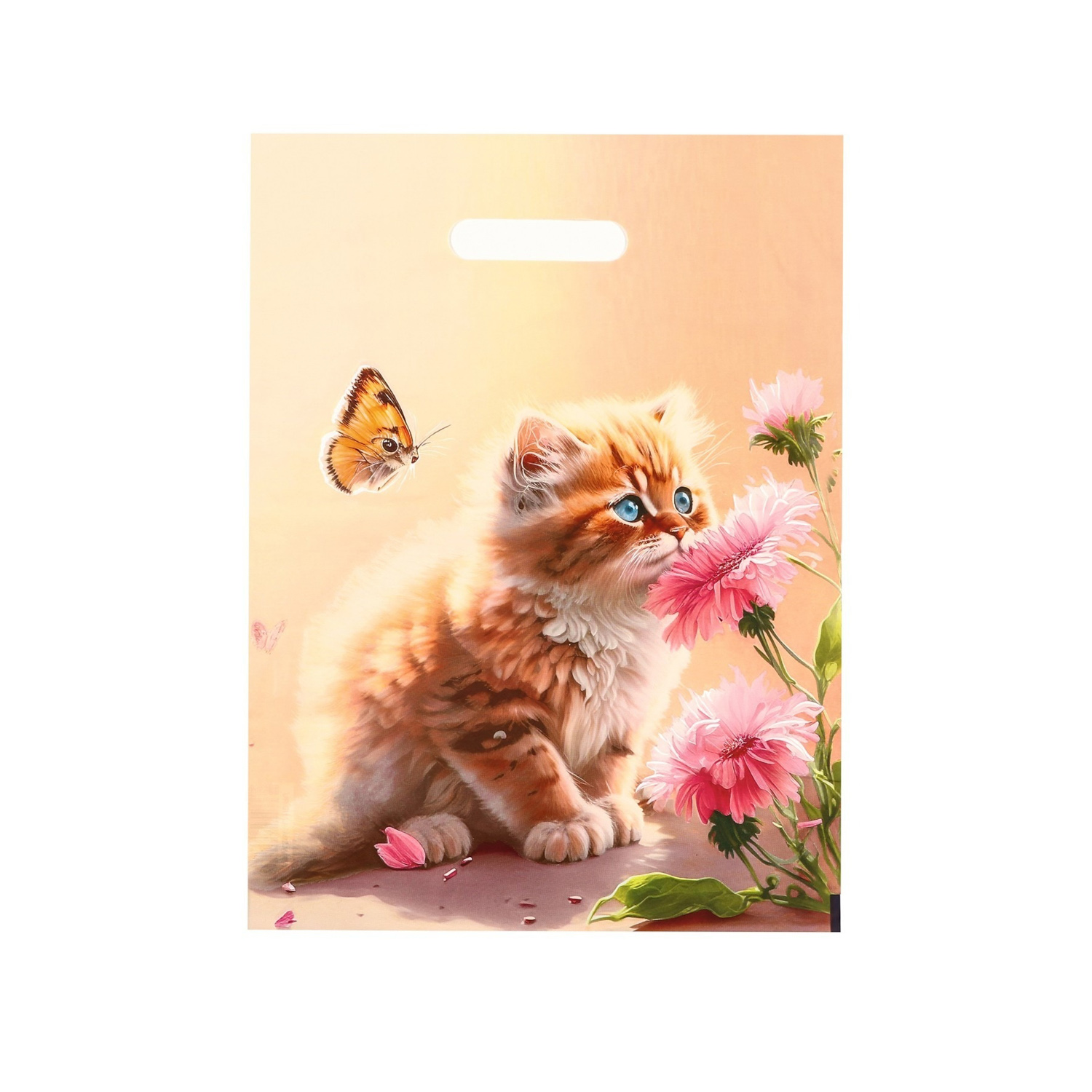 Пакет полиэтиленовый с вырубной ручкой "Котёнок с цветами", 30х40 см, 50 мкм 9559543