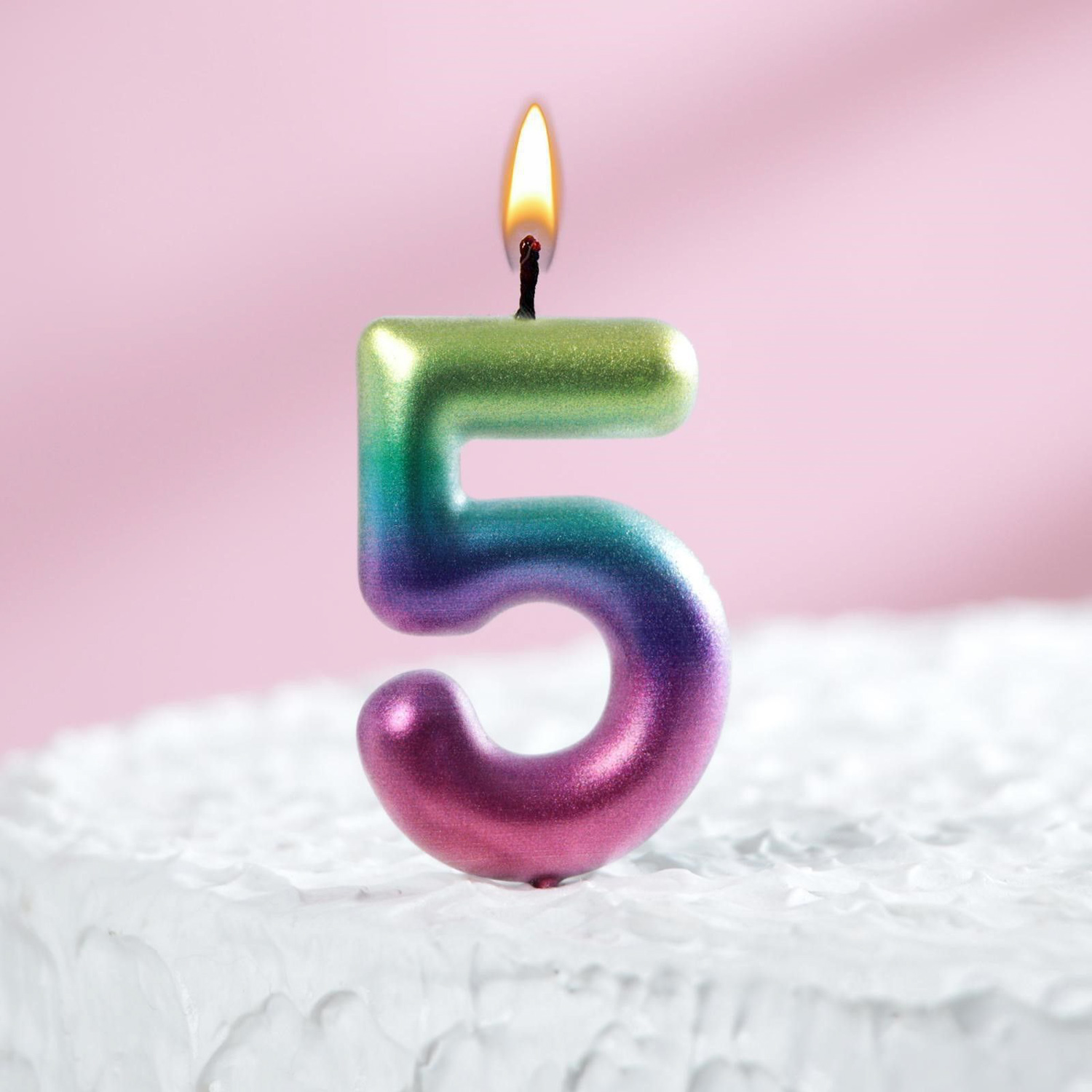 Свеча в торт "Акварель", цифра 5, 6 см 120317