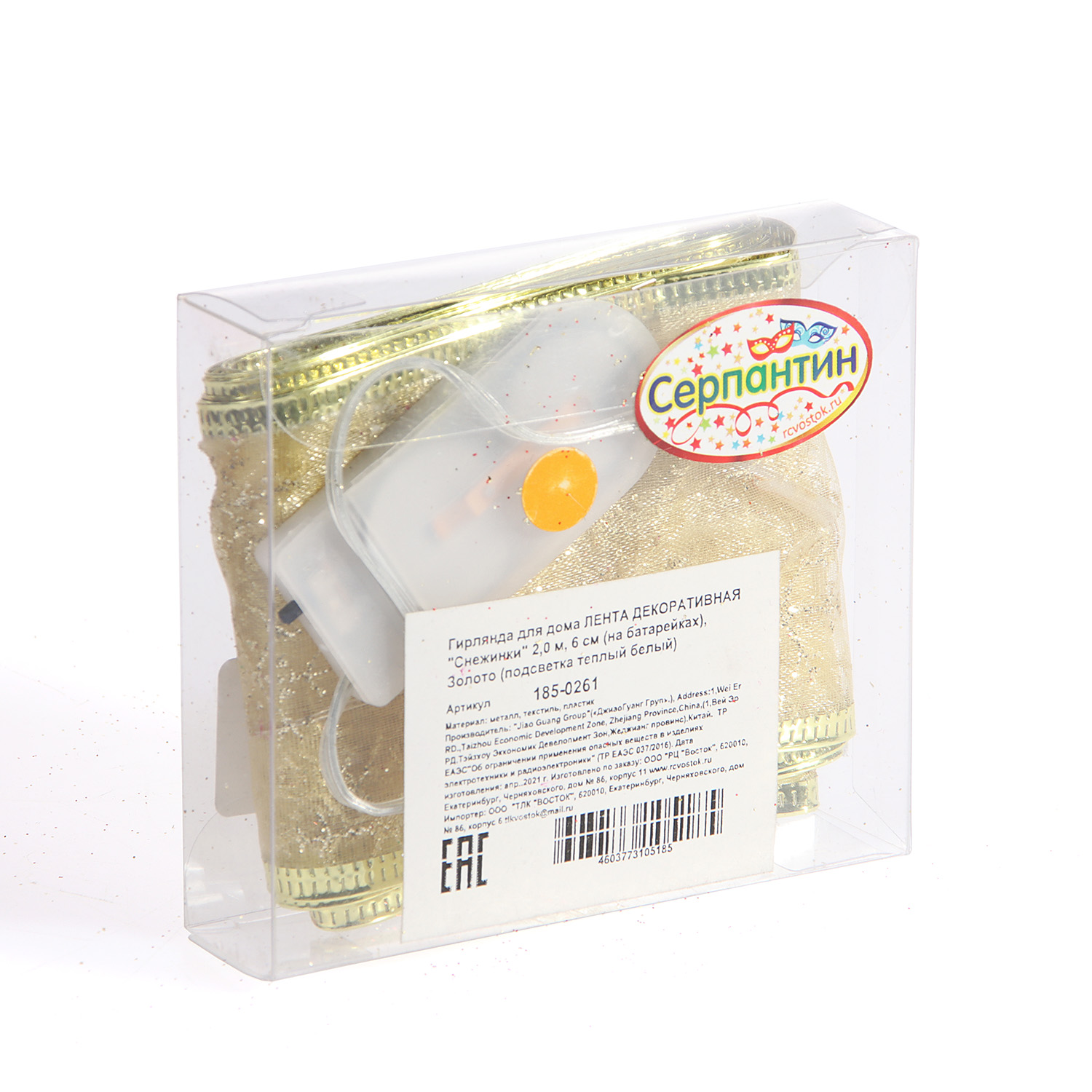 Гирлянда для дома, лента декоративная «Снежинки» 2,0 м, 6 см (на батарейках), золото
