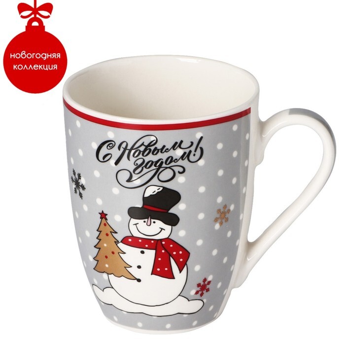 Кружка "Новый год" фарфор. 350мл "Новый год. Снеговичок в шарфе" 9606786 "Доляна" *12/48