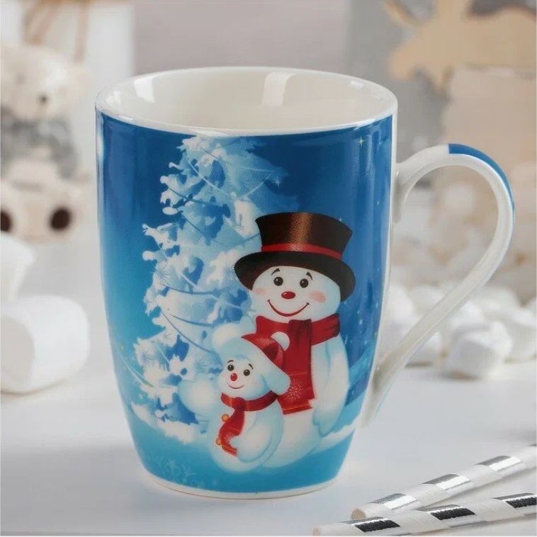 Кружка "Новый год" фарфор. 350мл "Снеговики. Сын и отец" 3324259 "Доляна" *12/48