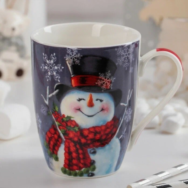 Кружка  "Новый год" фарфор. 350мл "Снеговик-обаяшка" 3324257 "Доляна" *12/48