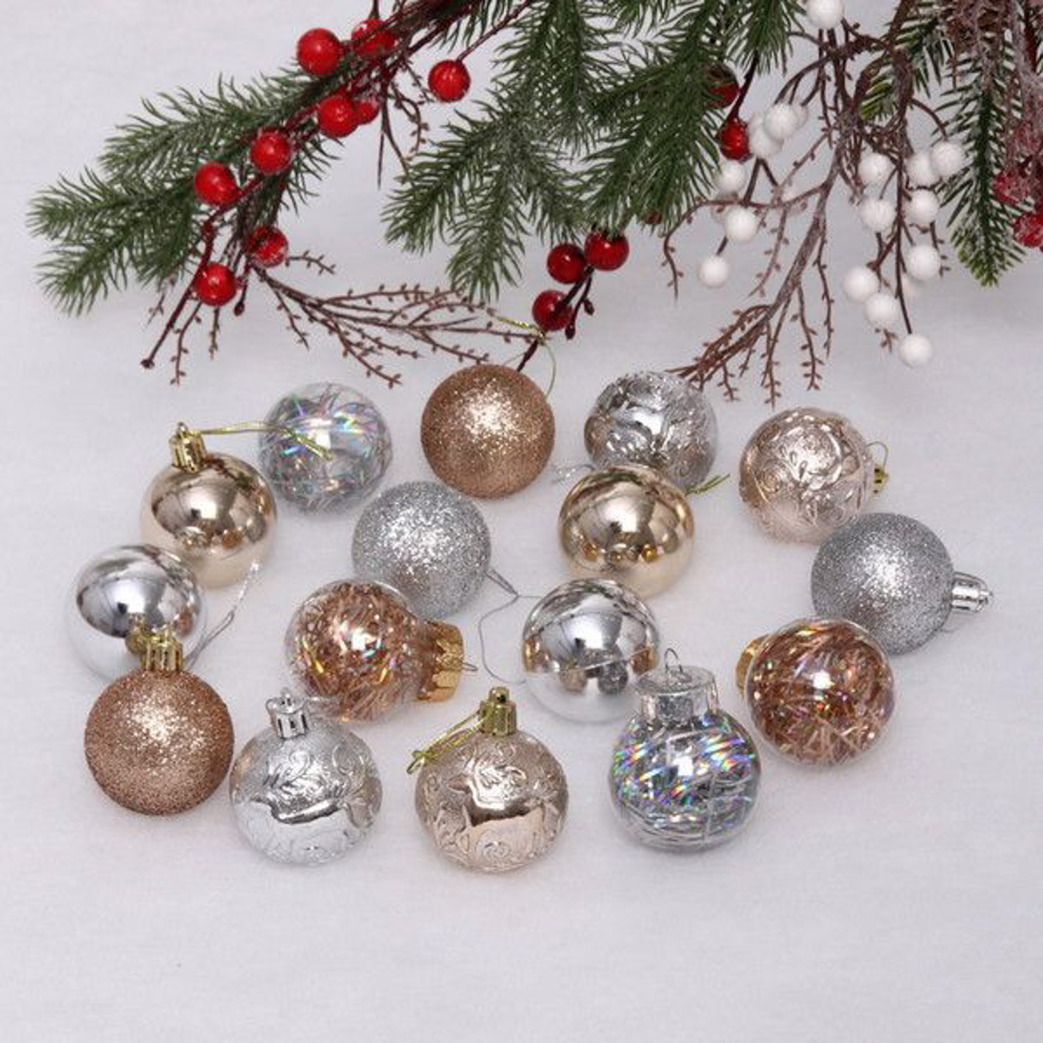 Набор шаров "Волшебный вальс" 5 см (16 предметов), шампань/серебро