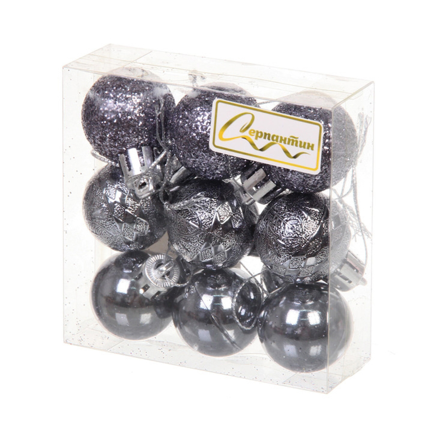 Новогодние шары 3 см (набор 9 шт) «Микс фактур», графит